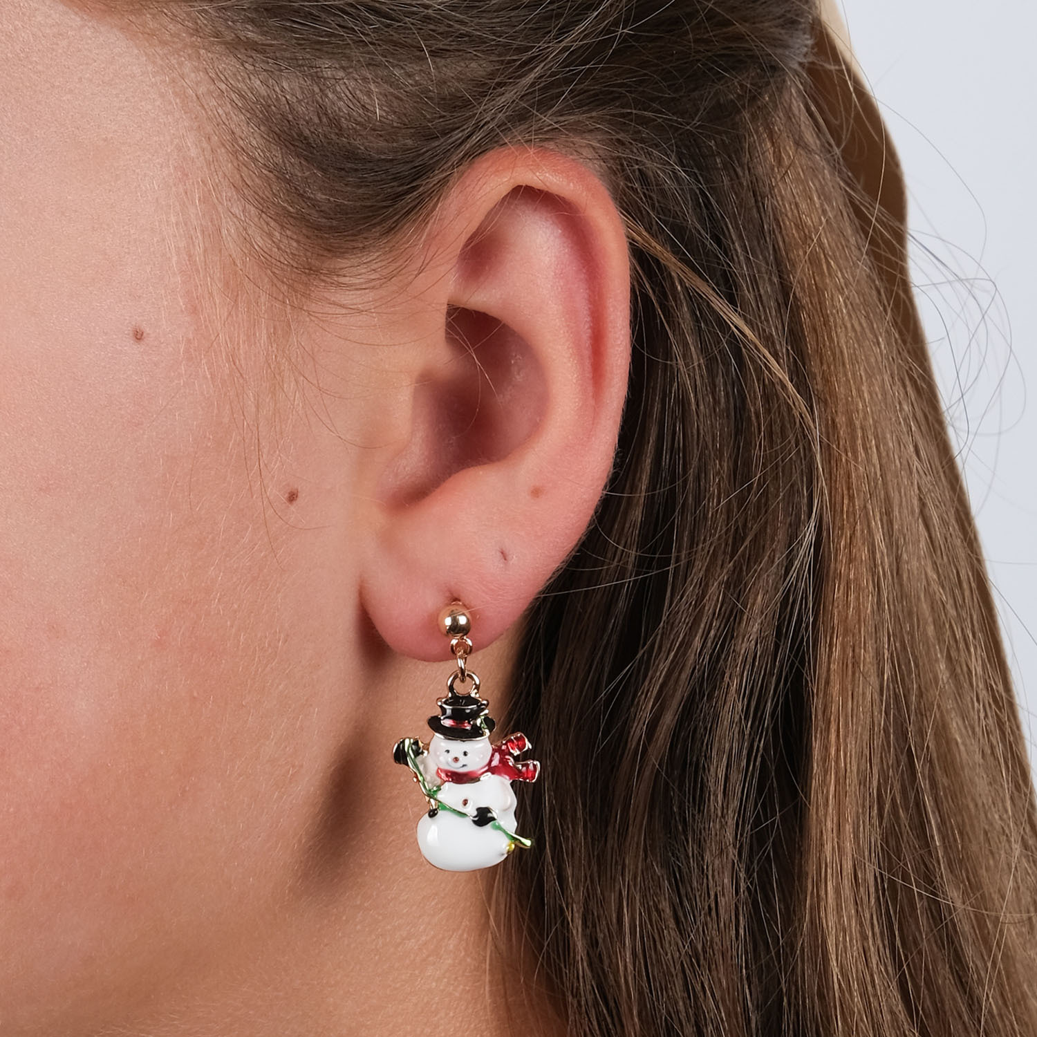 Bring winter wonder to your jewellery collection with our new Snowman Christmas Drop Earrings. Featuring a cheerful snowman complete with a red scarf, green mittens, and black top hat, these festive earrings capture the spirit of the season in every detail.